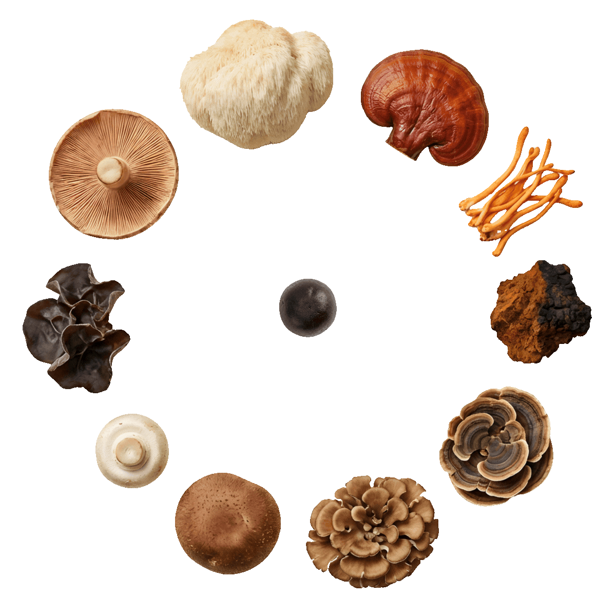 Each mushroom serves a specific purpose. Together, they cover every system in your body.